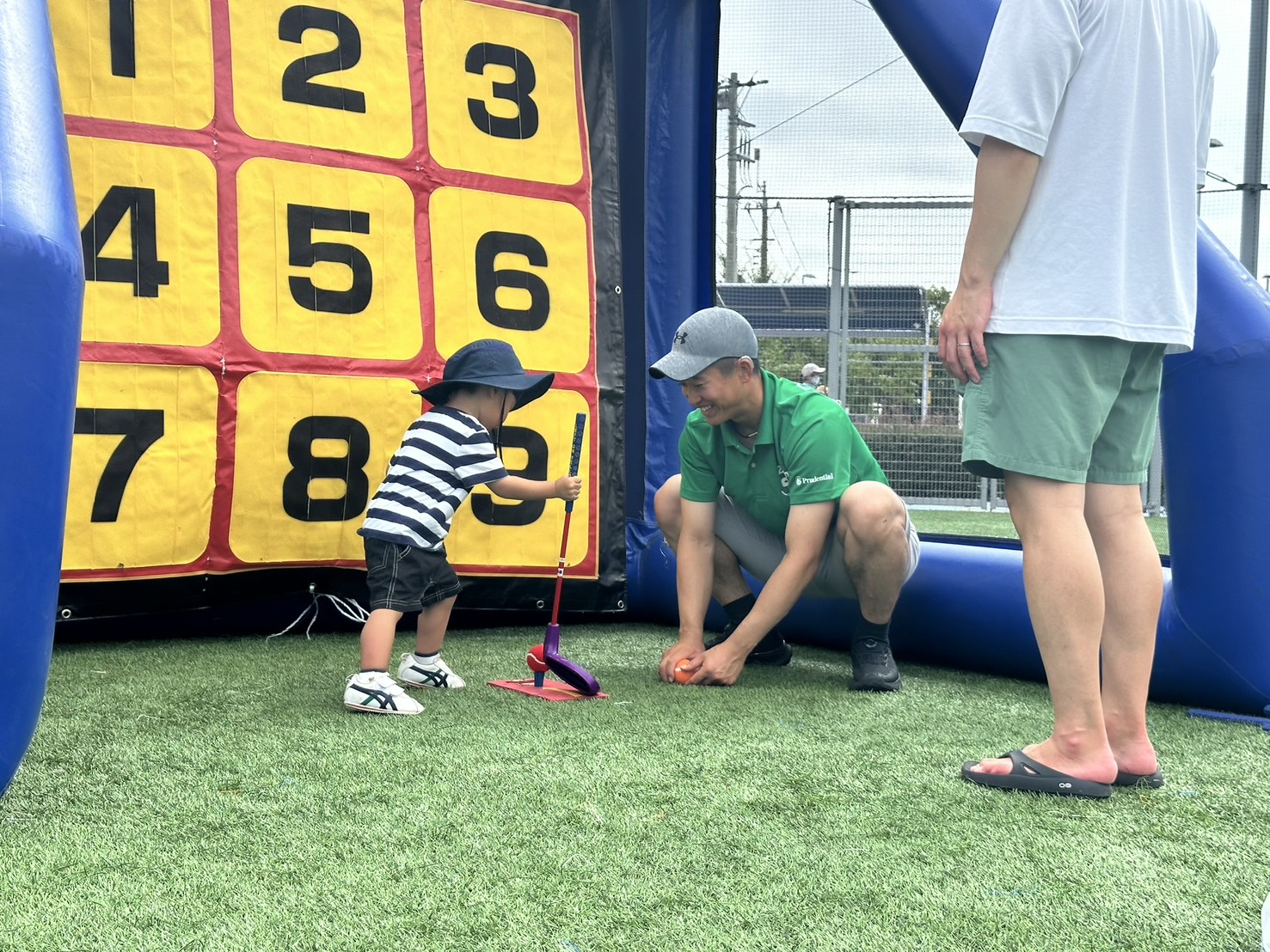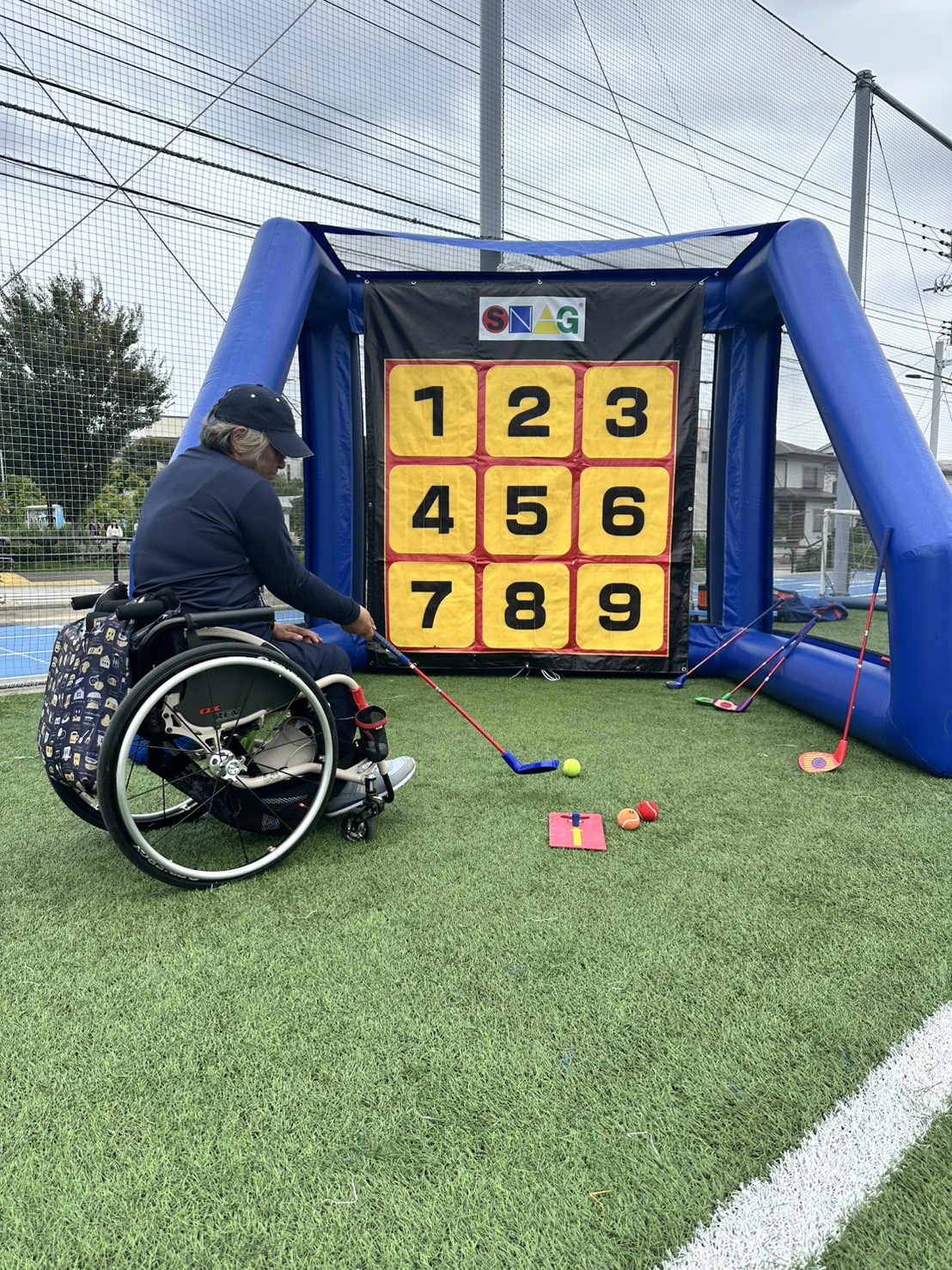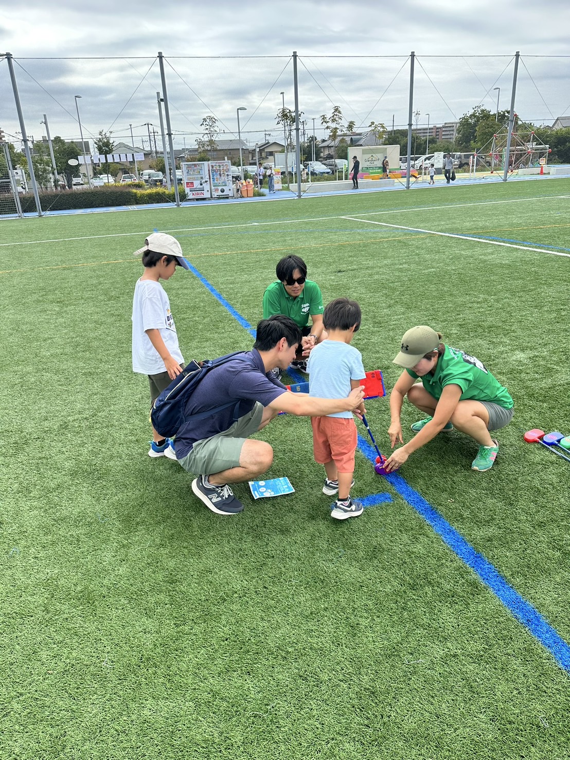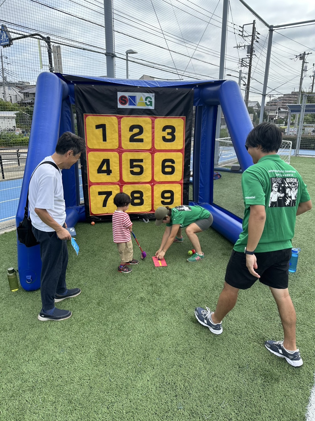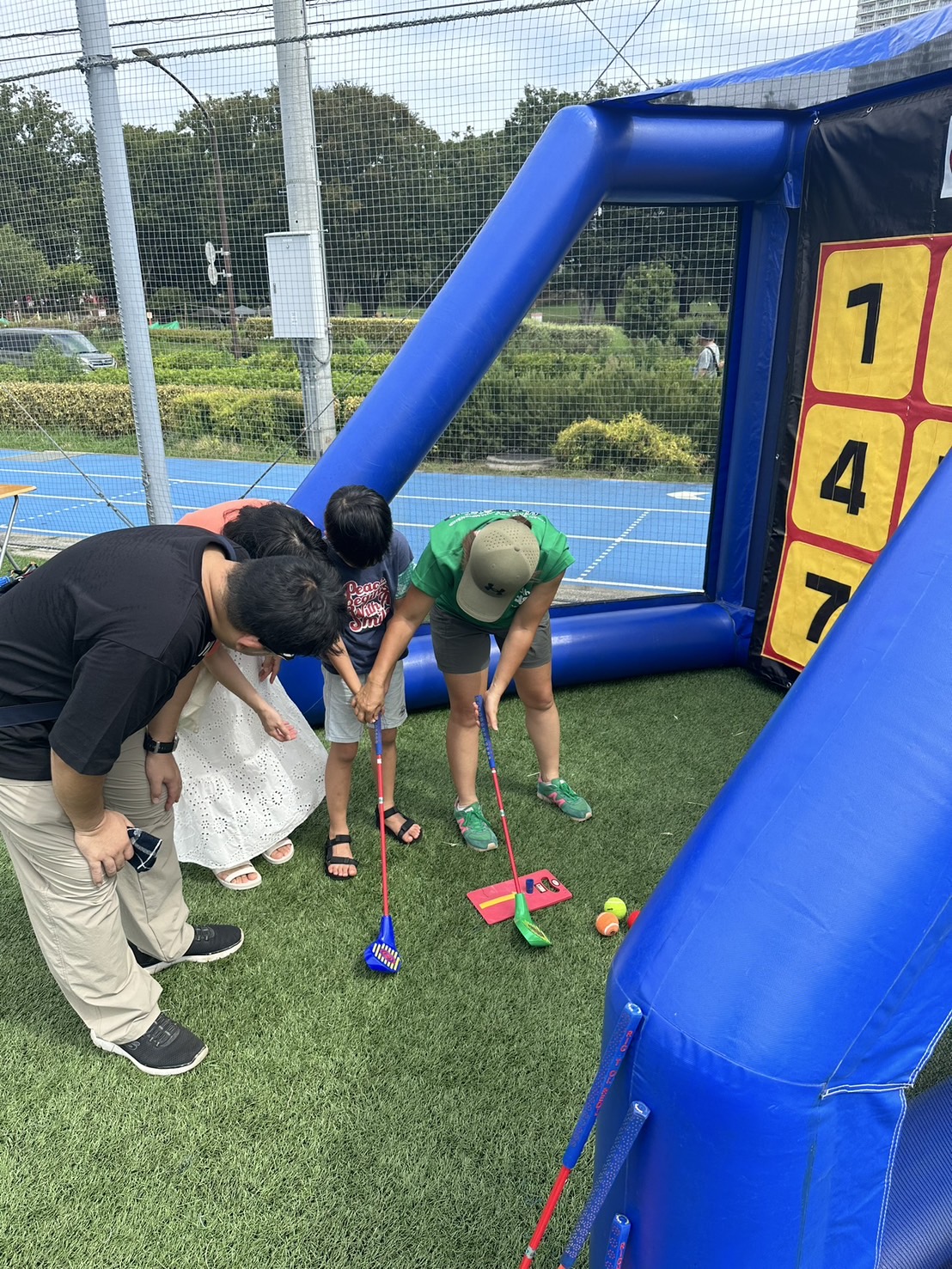 東京スナッグゴルフ協会の協力によりクラブを貸し出し、多くの子どもたちが楽しく挑戦していました。子どもたちは狙いを定めて工夫しながら打ち、達成感を味わっていました。